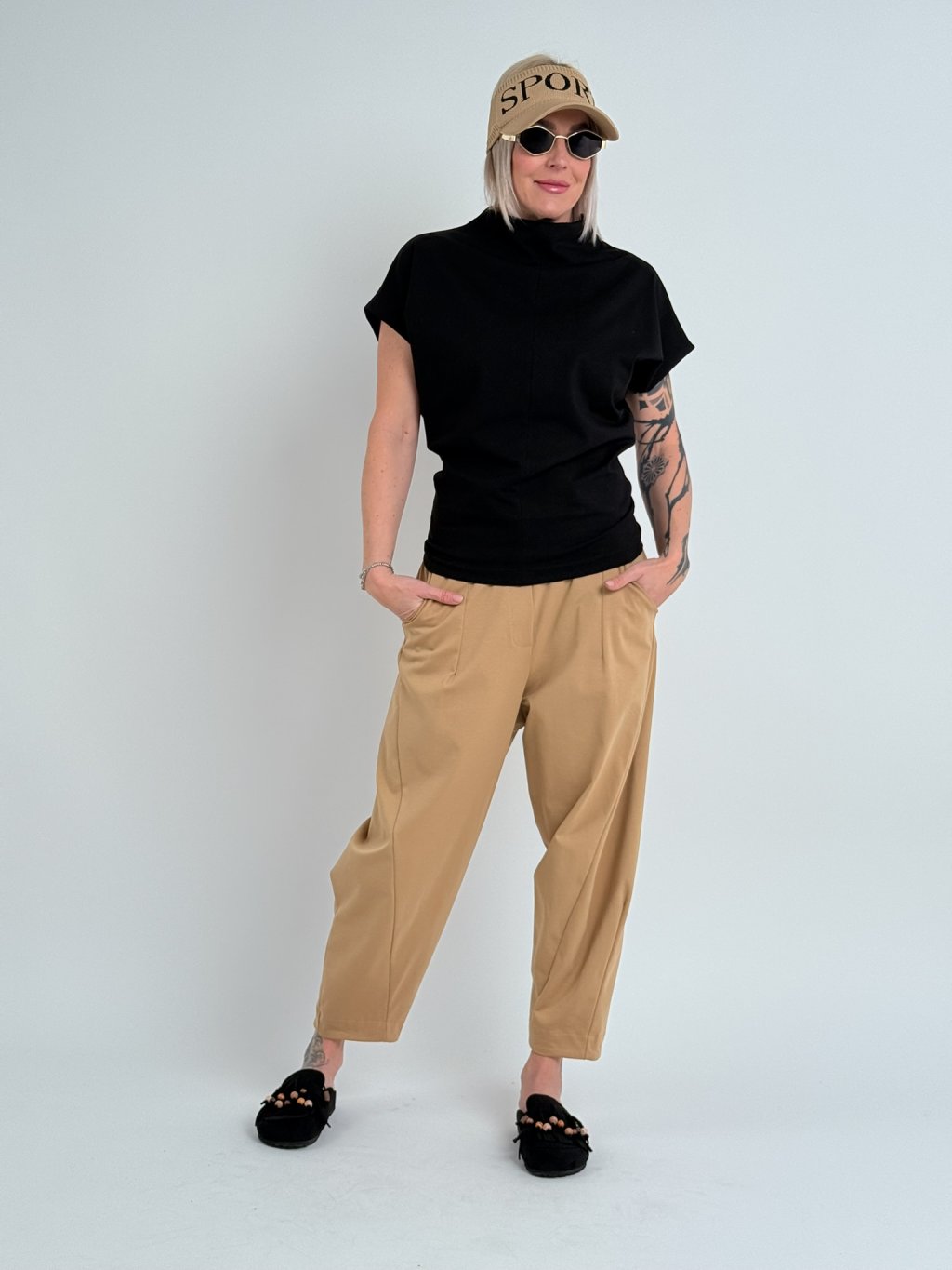 Krásna čiapka vzadu s reguláciou obvodu a zlatou aplikáciou na prednej strane.