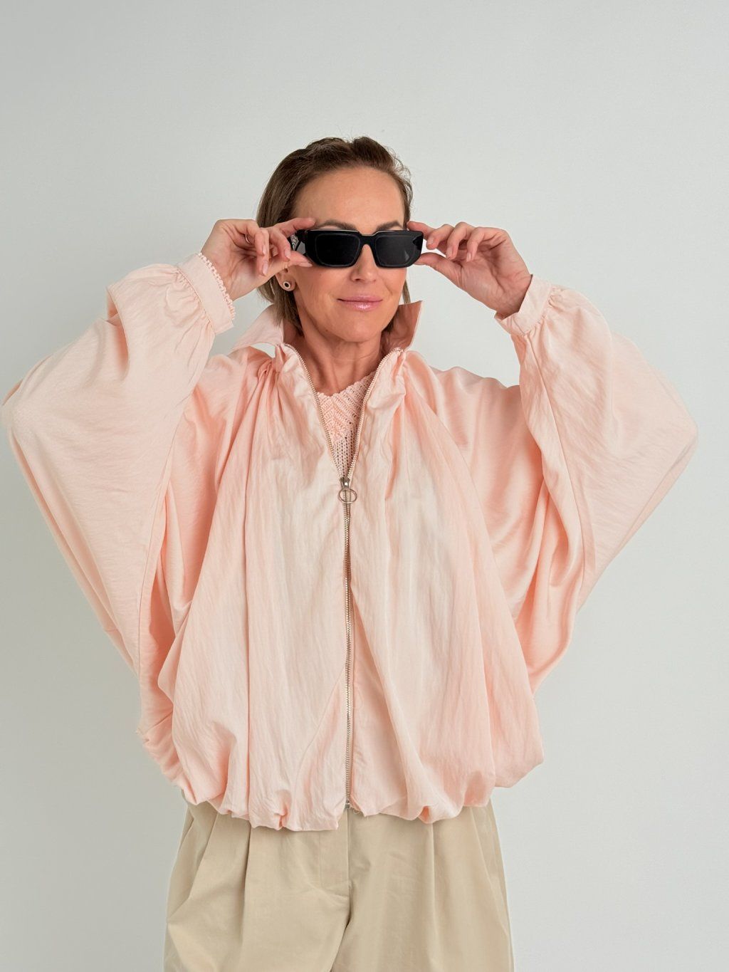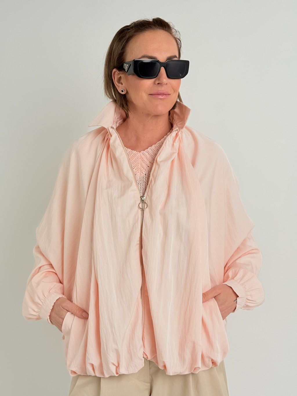 Ľahká bunda alebo bomber s raglánovými rukávmi a nariaseným predným dielom, ktorý je podšitý rôznofarebnou látkou, zapínaním na zips a gumou na konci rukávov a v spodnej časti predného dielu, kde sú aj vrecká.