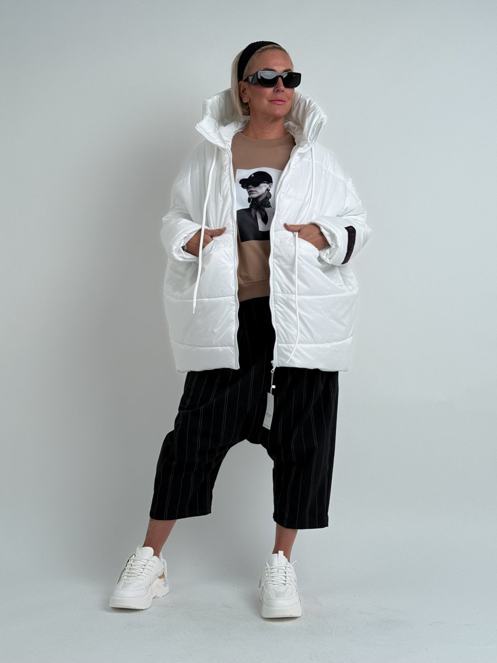 One Size, vhodná pre veľkosti S-XL (šírka hrudníka 73 cm, šírka pása 60/73 cm, dĺžka 58 cm, dĺžka rukáva 71 cm).