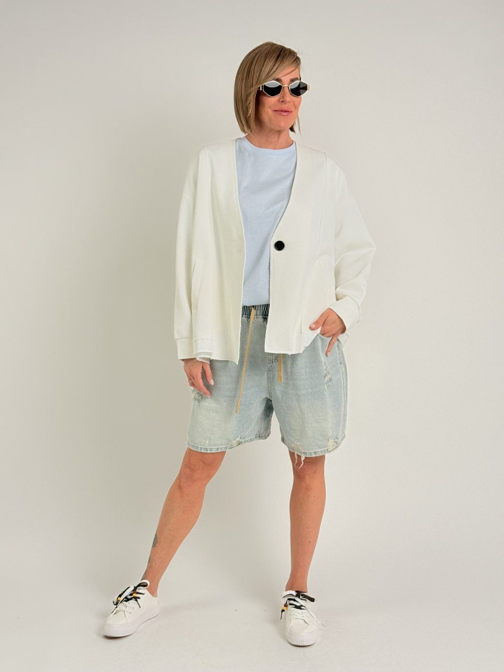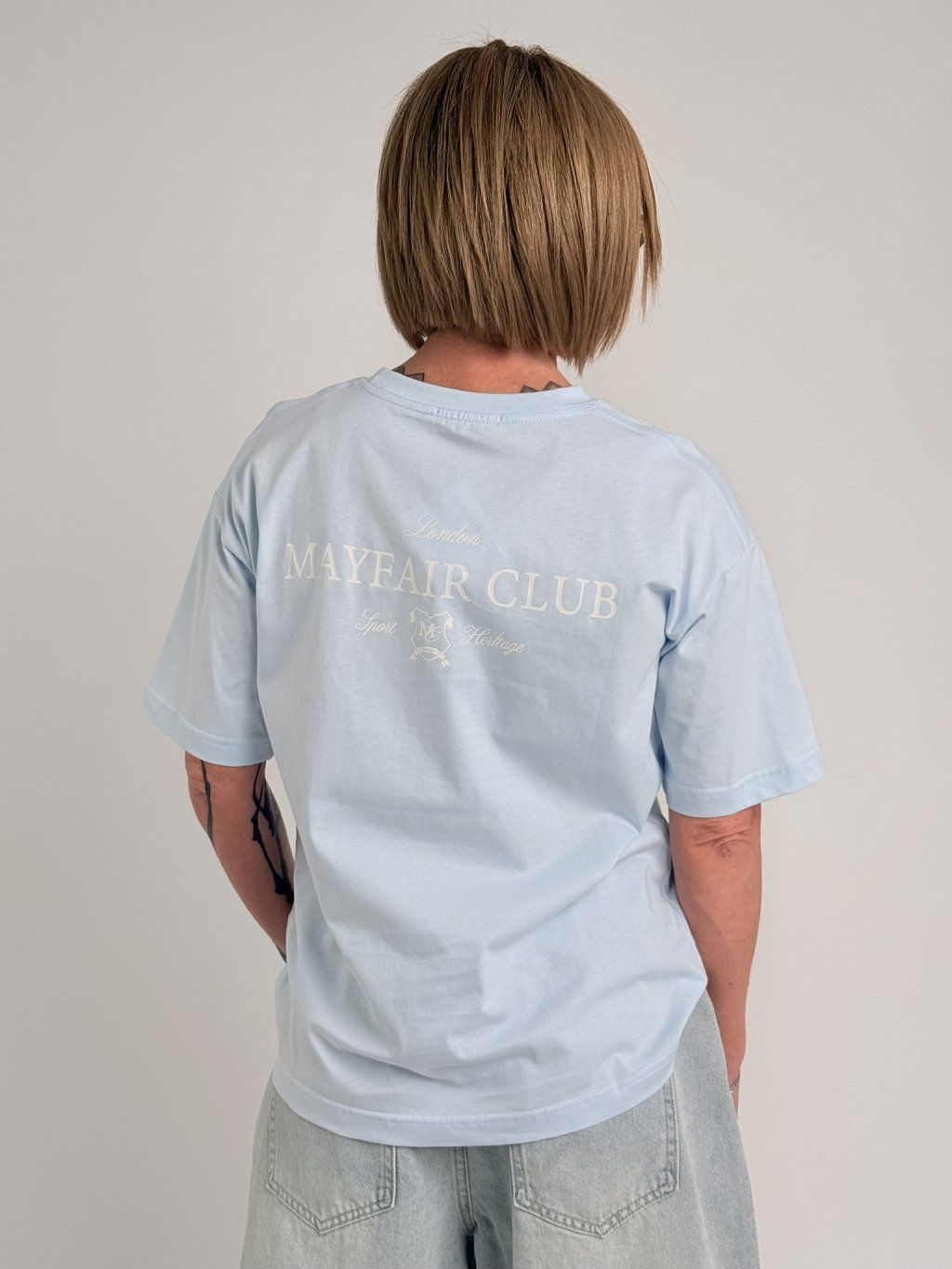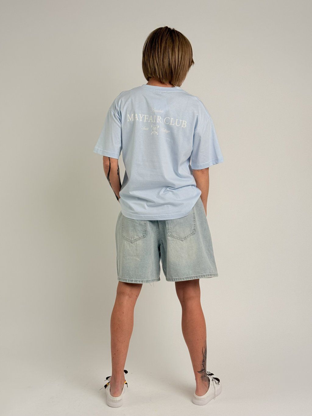 Krásne voľnejšie tričko s okrúhlym výstrihom, krátkymi rukávmi a bielou potlačou na prednej a zadnej strane.