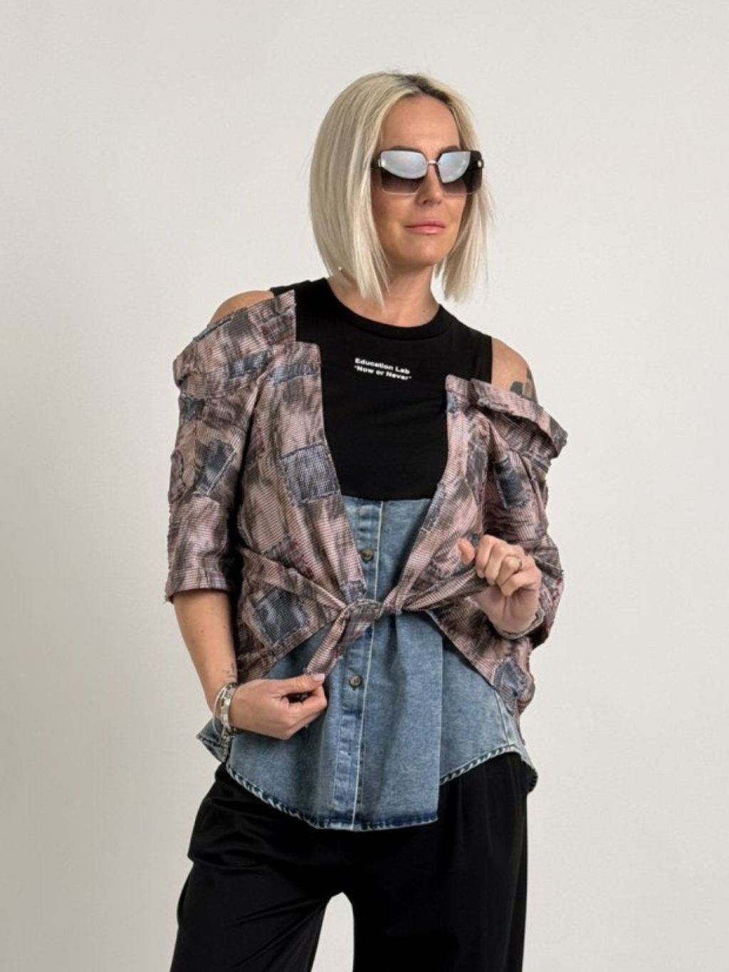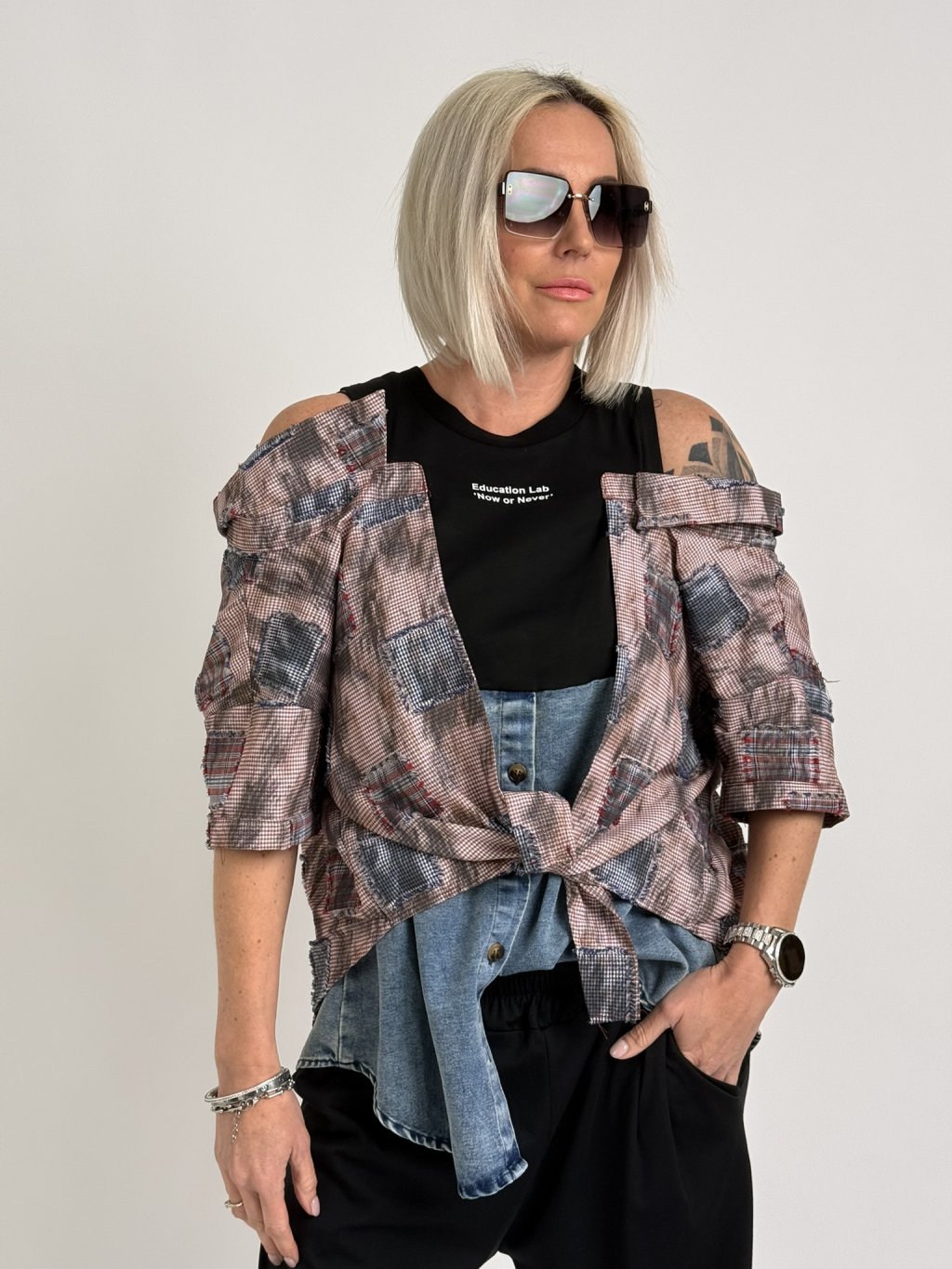 Absolútne originálne, zaujímavé a netradične riešené tričko s vnútorným tielkom obľúbenej značky DEGRES.Jedinečný kúsok, ktorý spestrí váš outfit!