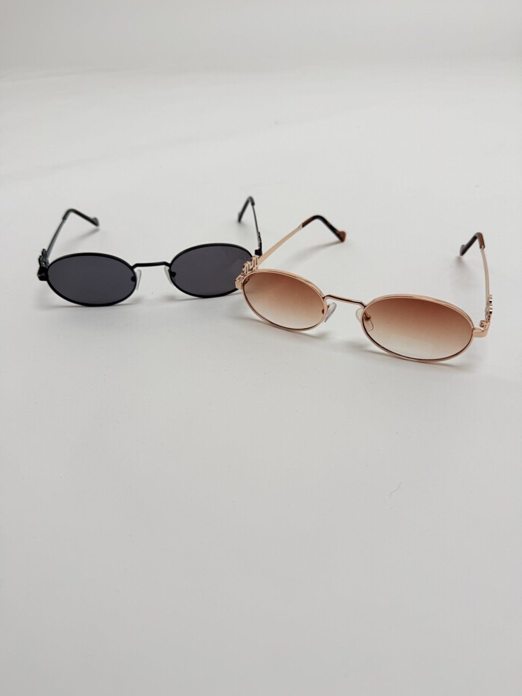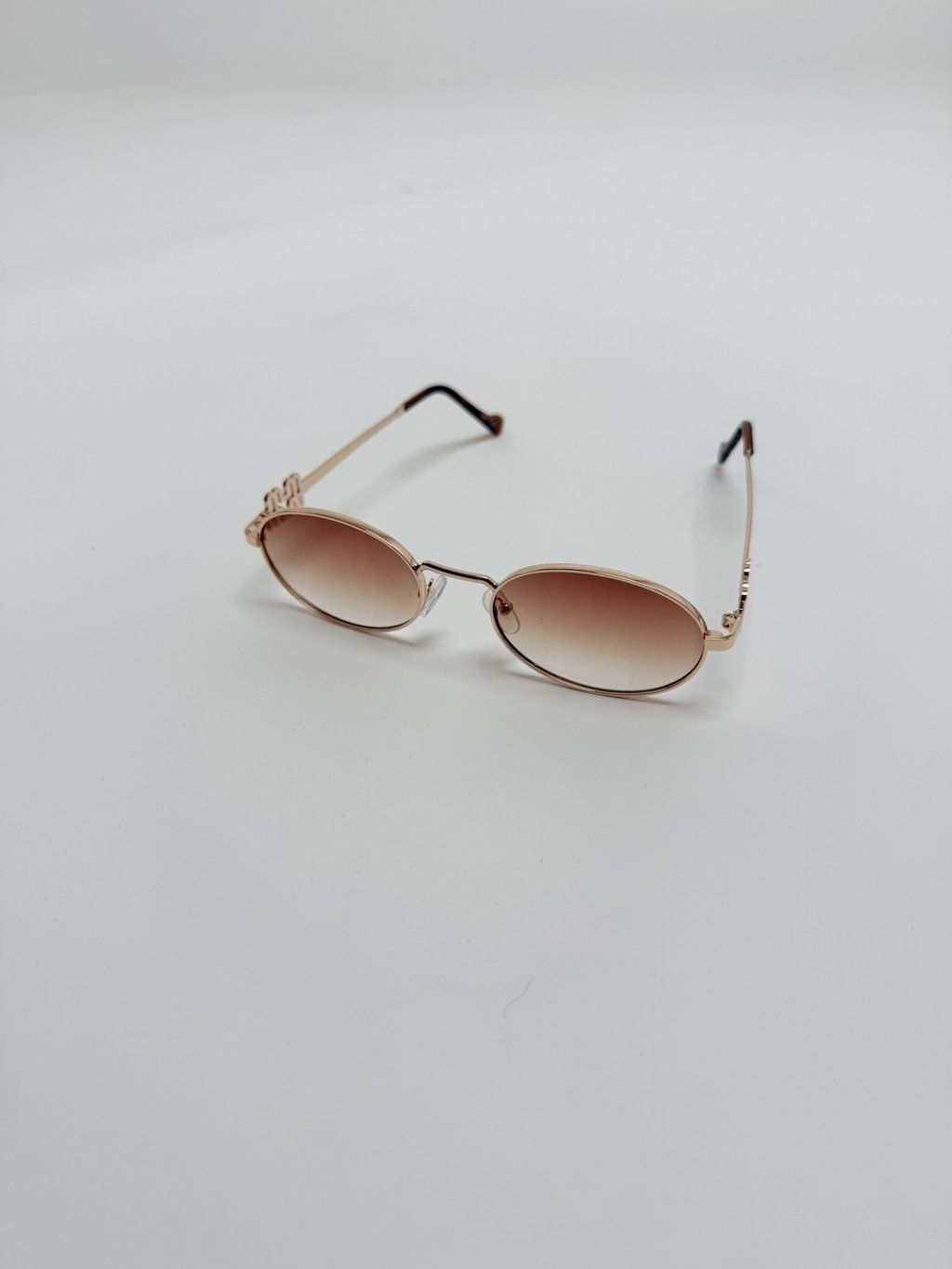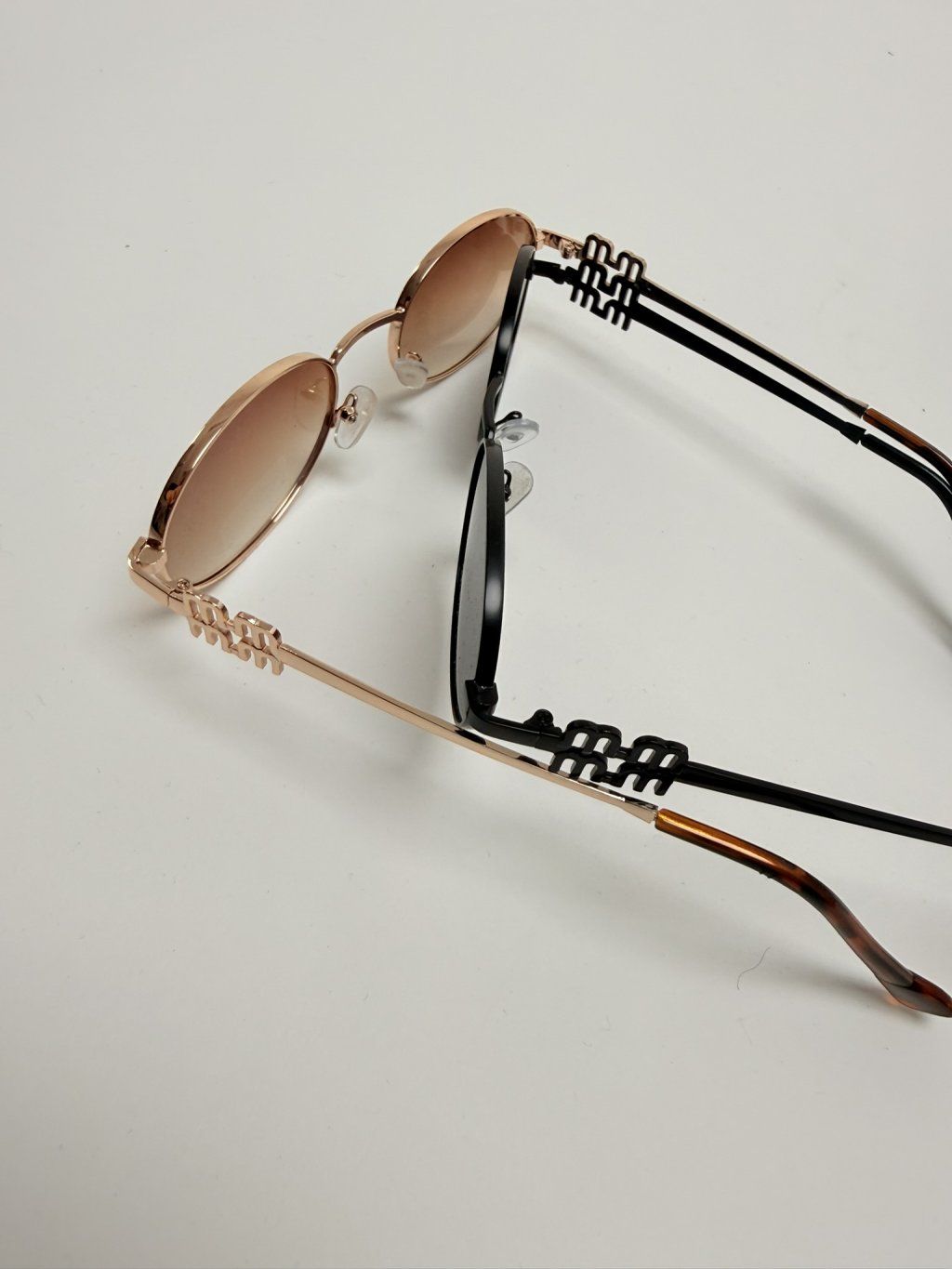 Moderný tvar okuliarov s hnedým a čiernym povrchom.