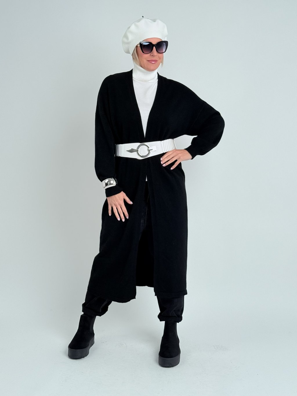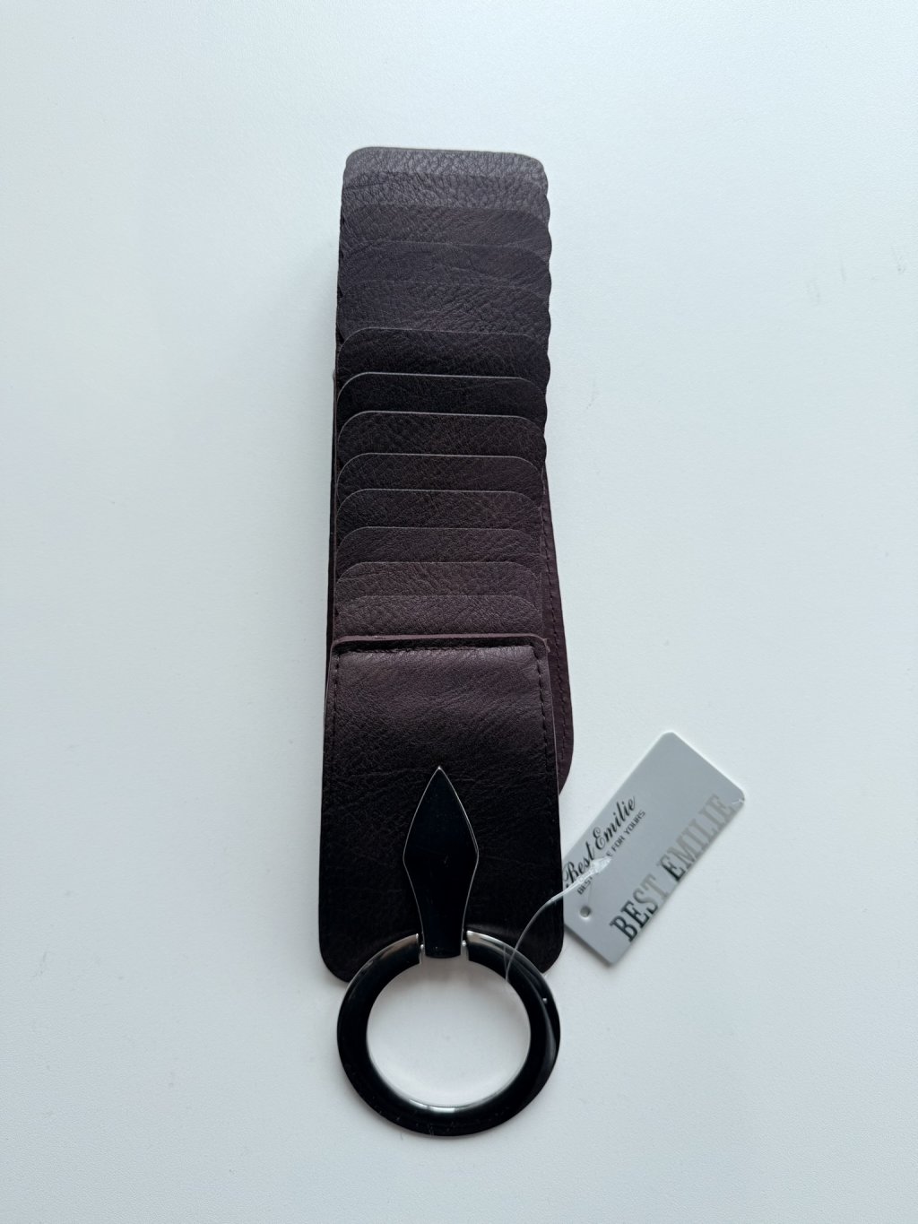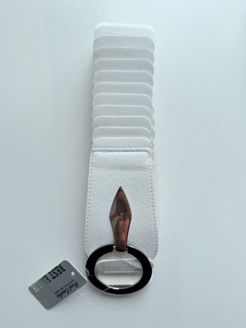 Pružný opasok v kombinácii kože a gumy so striebornou prackou. Šírka 6 cm
