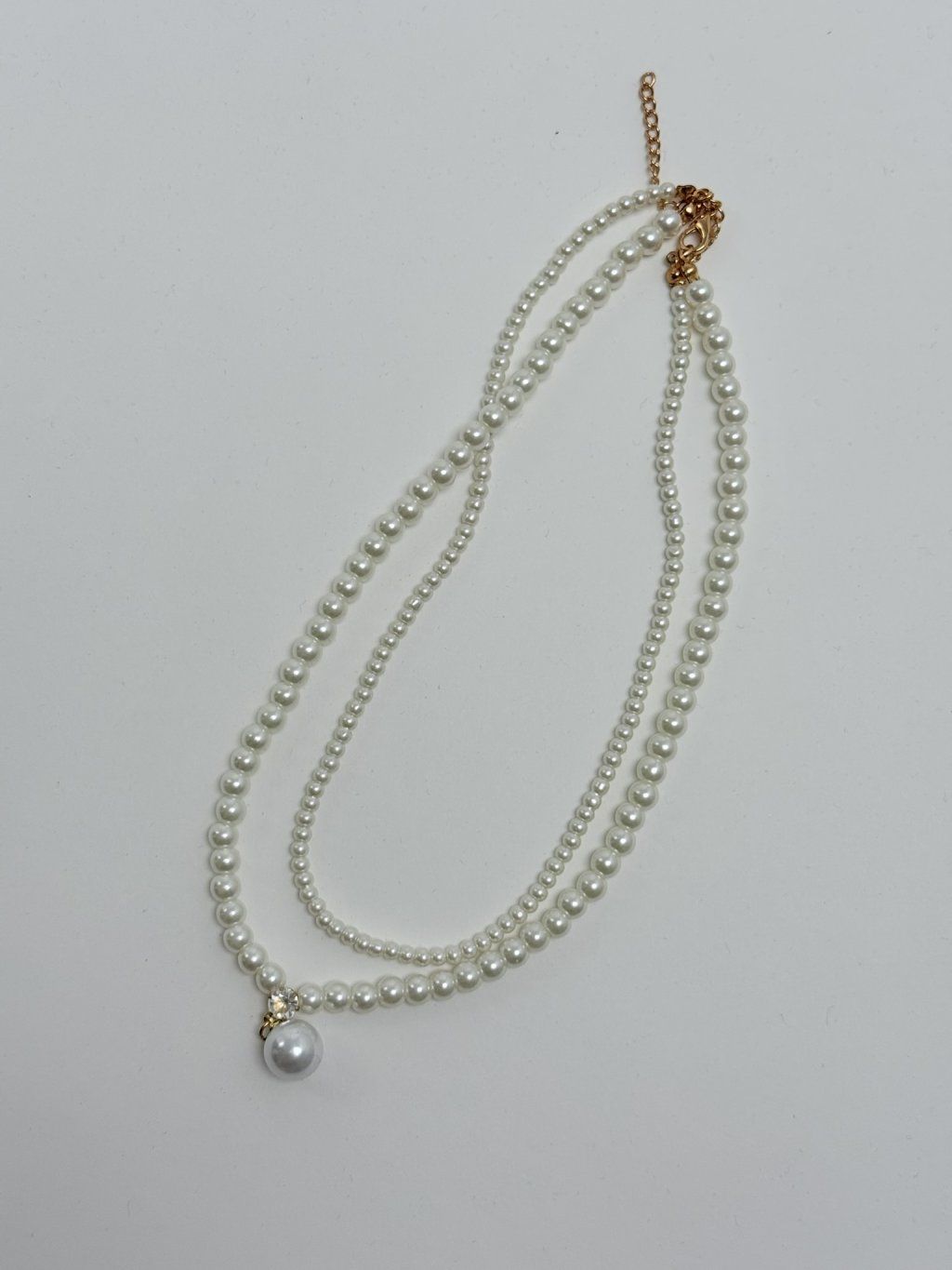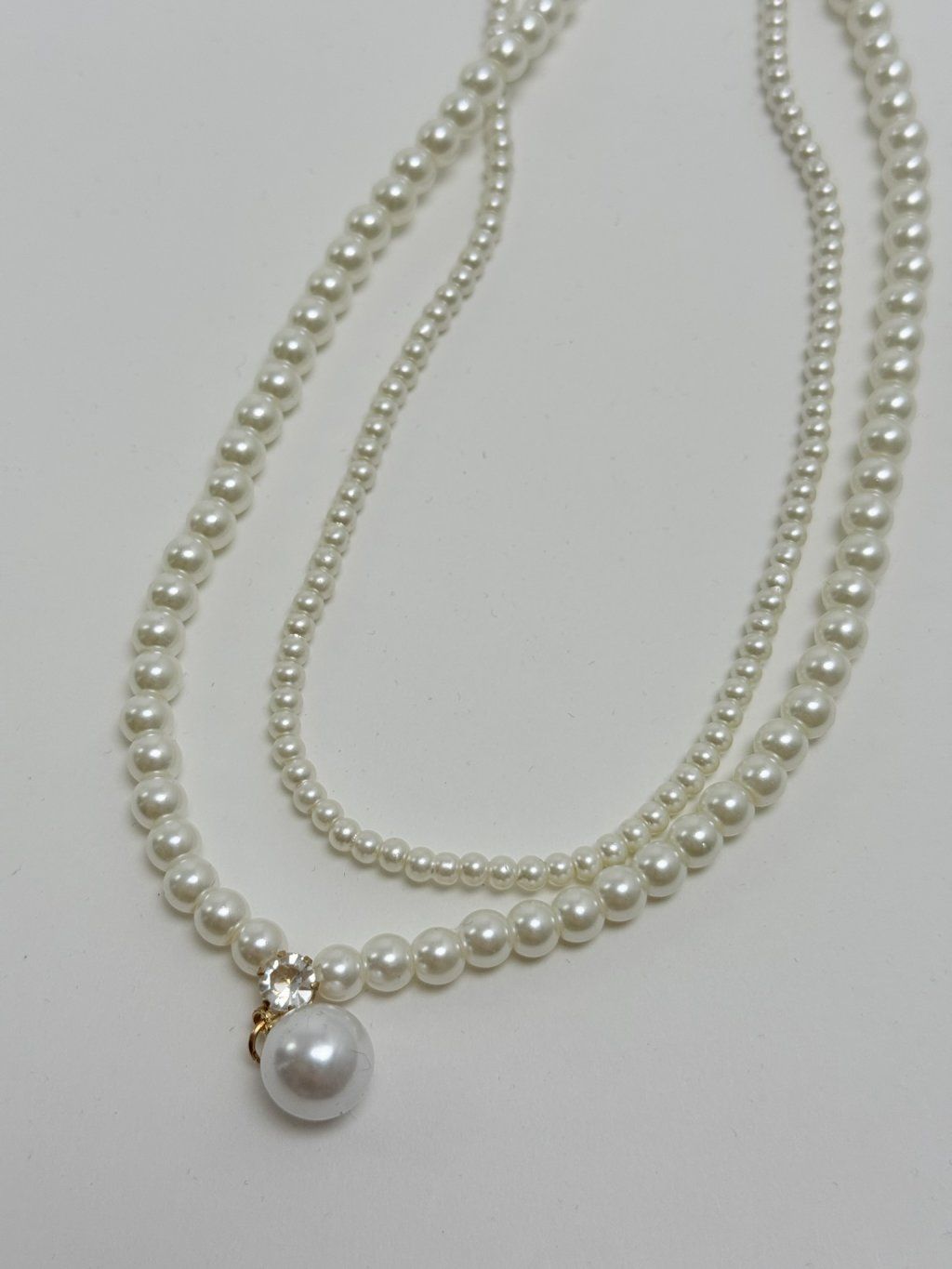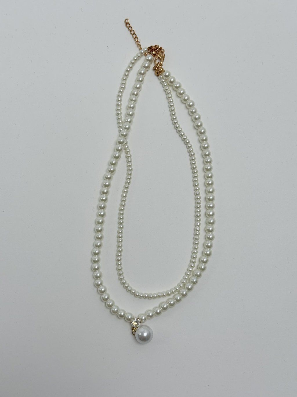 Krásny krátky dvojitý perlový náhrdelník zakončený väčšou perlou. Dĺžka 42 cm.