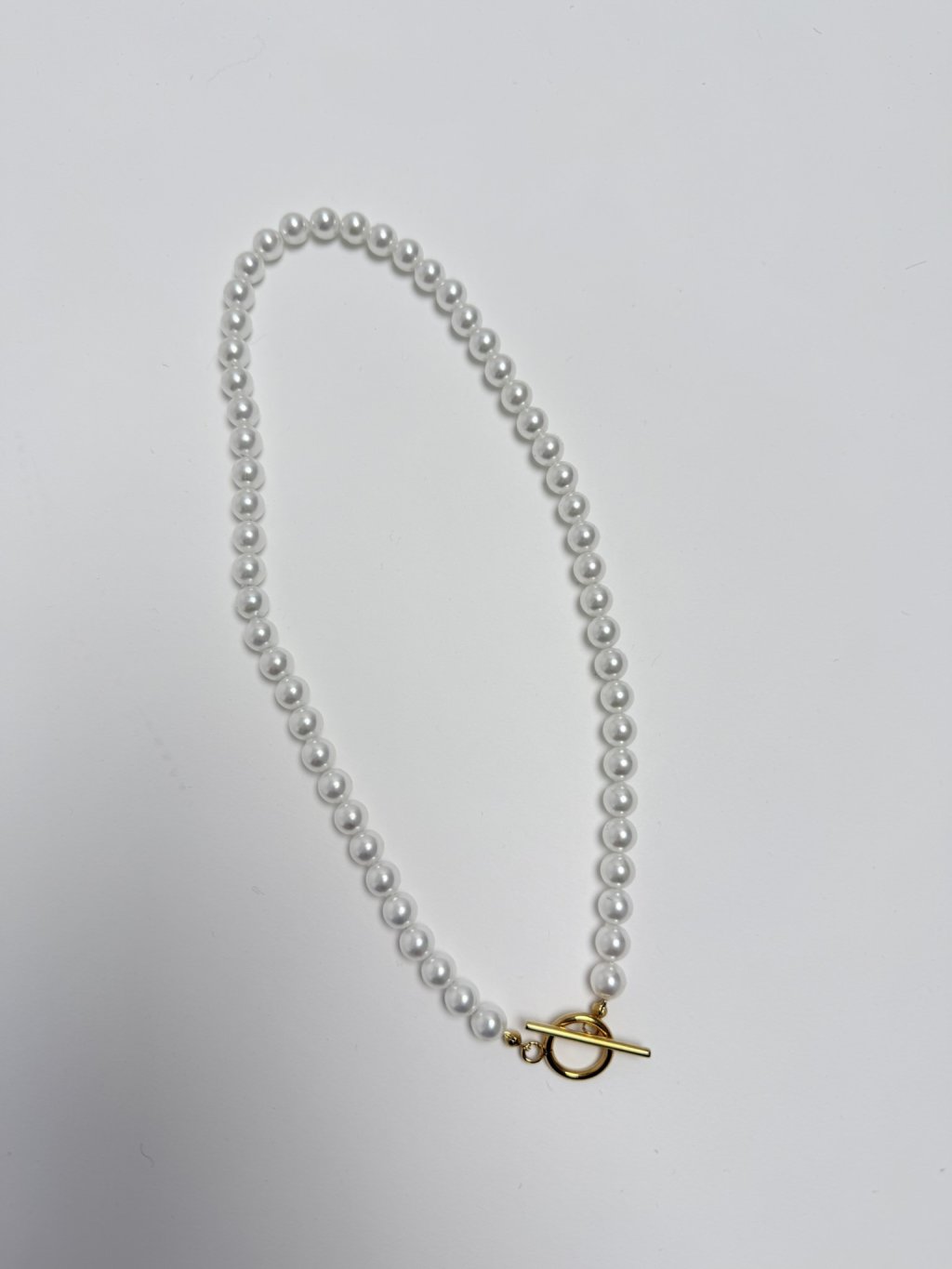 Krásny, biely, krátky náhrdelník ukončený zlatým zapínaním. Dĺžka 42 cm.