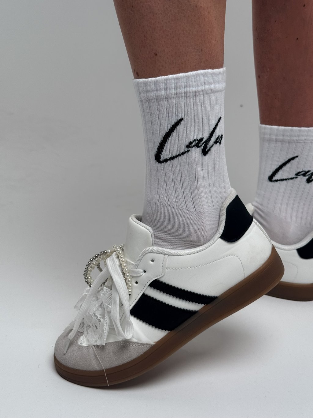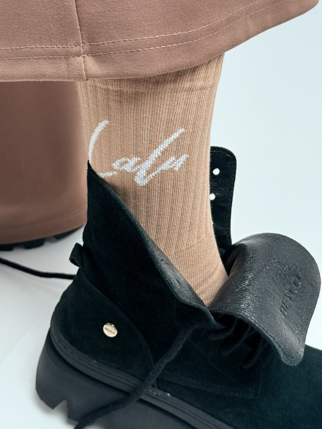 Krásne hrubšie ponožky nad členok s vyšitým logom. Vhodné pre veľkosť 36/40.