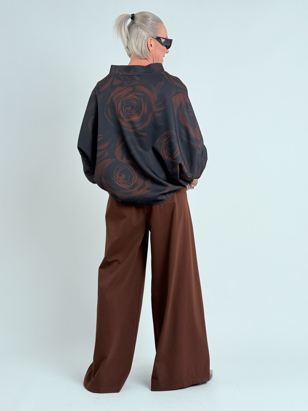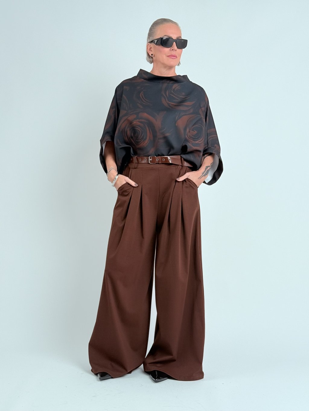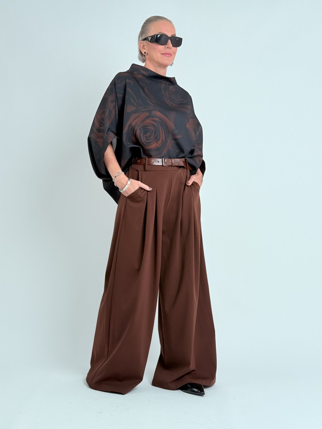Dokonalé široké nohavice s elastickým pásom, opaskom a bočnými vreckami.