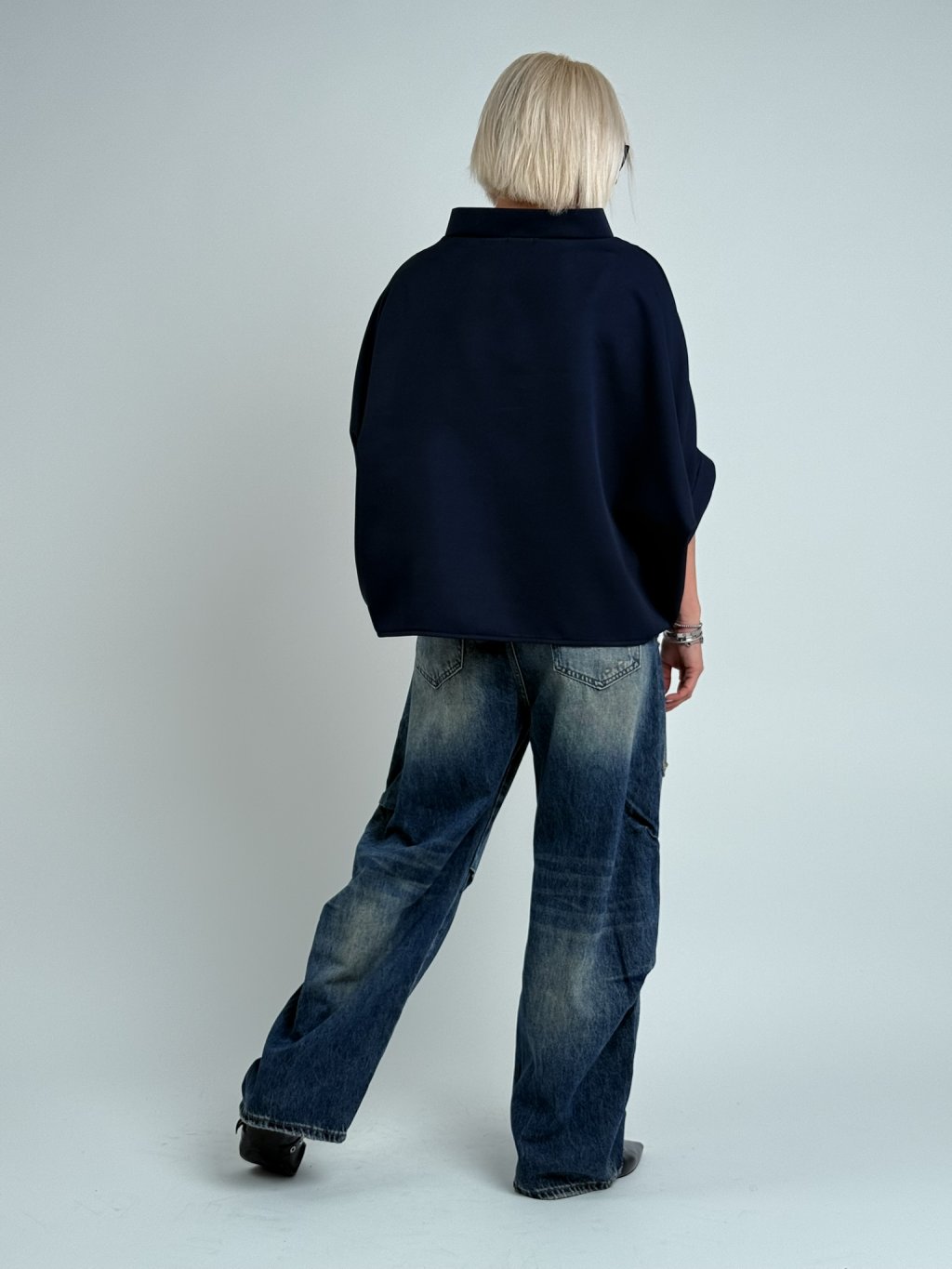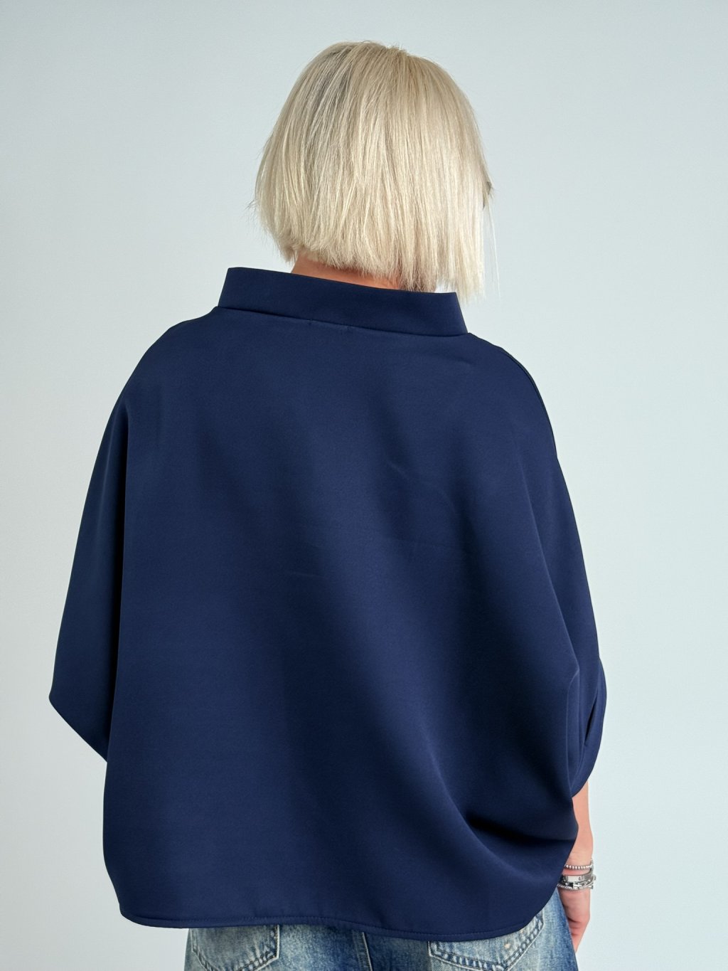 Luxusná tunika netopierieho strihu so širokým stojacím golierom. Vhodná na vrstvenie.