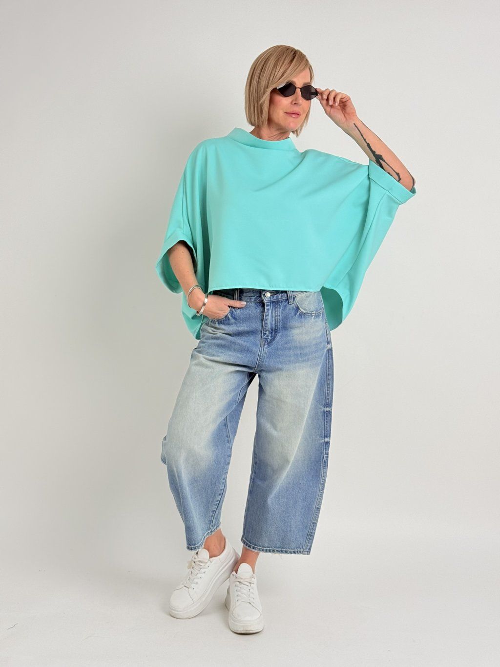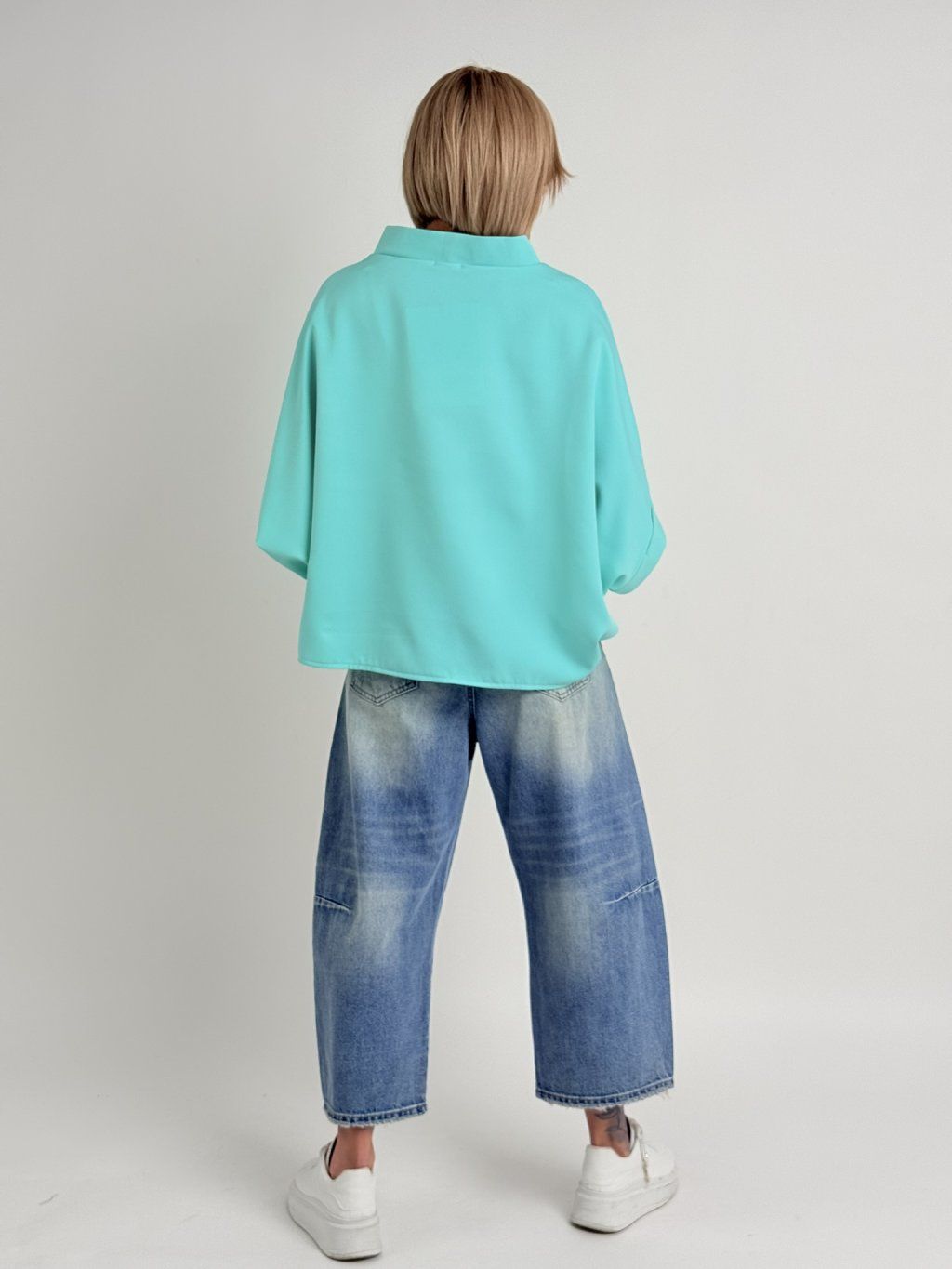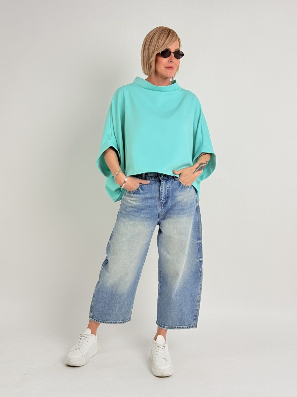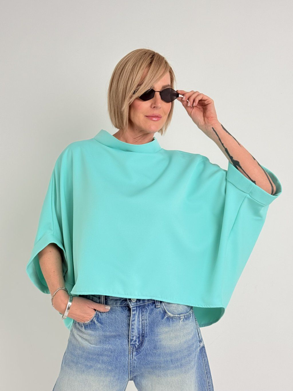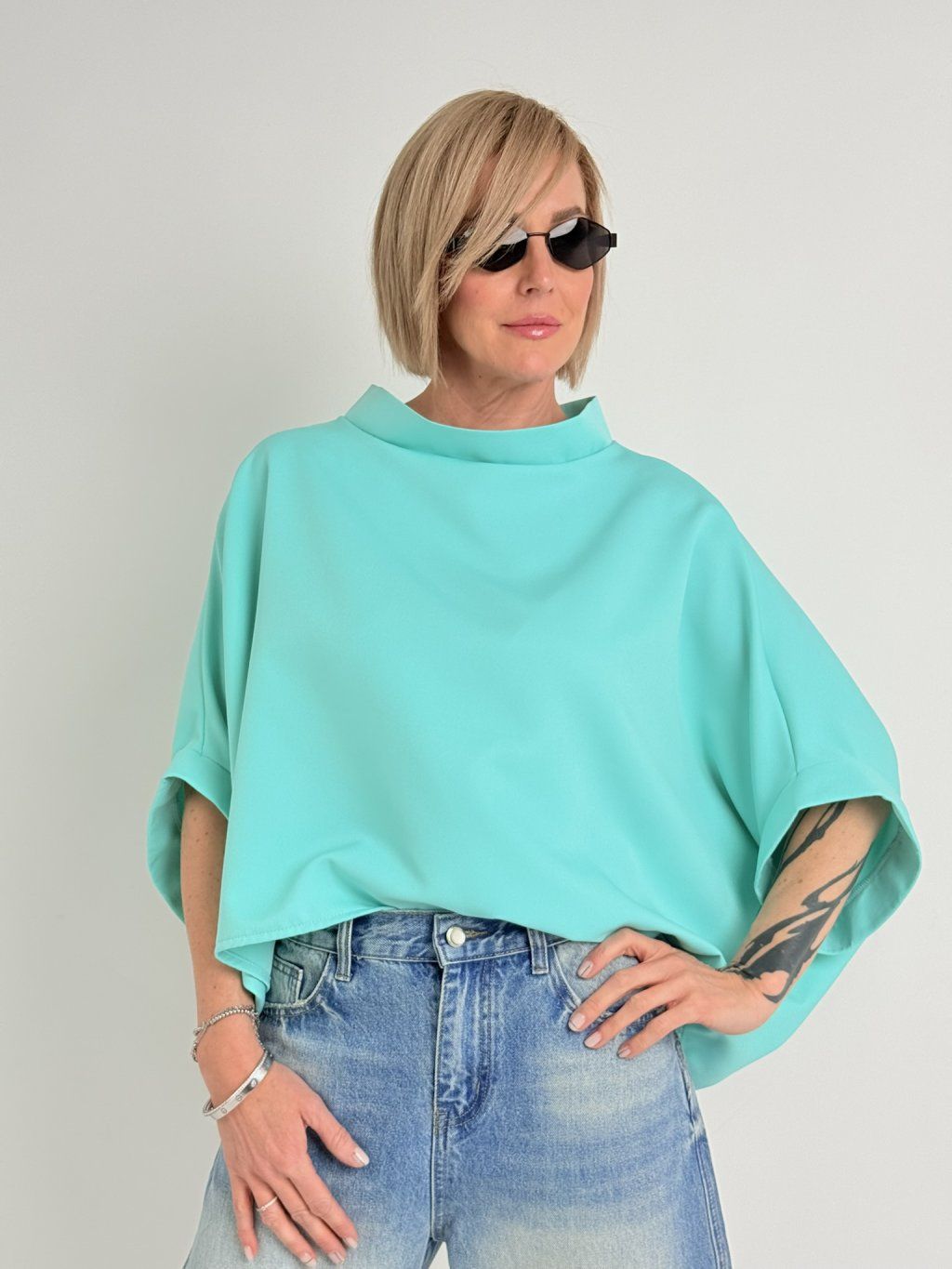 Luxusná tunika netopierieho strihu so širokým stojacím golierom. Vhodná na vrstvenie.